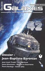 Pour cette quarante-deuxième livraison de la revue Galaxies, on nous offre des nouvelles de Pierre Bordage, Manuel Le Gourrierec, Éric Morlevat, Gulzar Joby, Jean-Louis Trudel (bien connu des lecteurs de Solaris) et Janna Silverstein. Aussi, un dossier-gigogne sur Jean-Baptiste Baronian et les articles (littérature, musique, cinéma, BD, etc).