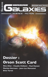Pour la quarante-quatrième livraison de Galaxies, il y a un dossier spécial Orson Scott Card (comprenant, entre autres, un entretien exclusif, une nouvelle, des essais) et des nouvelles de Nina Allan, Claudio Chillemi, Paul Hanost, Martine Hermant, Jean-Luc Marcastel et Brice Tarvel. Sans oublier les chroniques de bandes-dessinées, de cinéma et les critiques de livres.